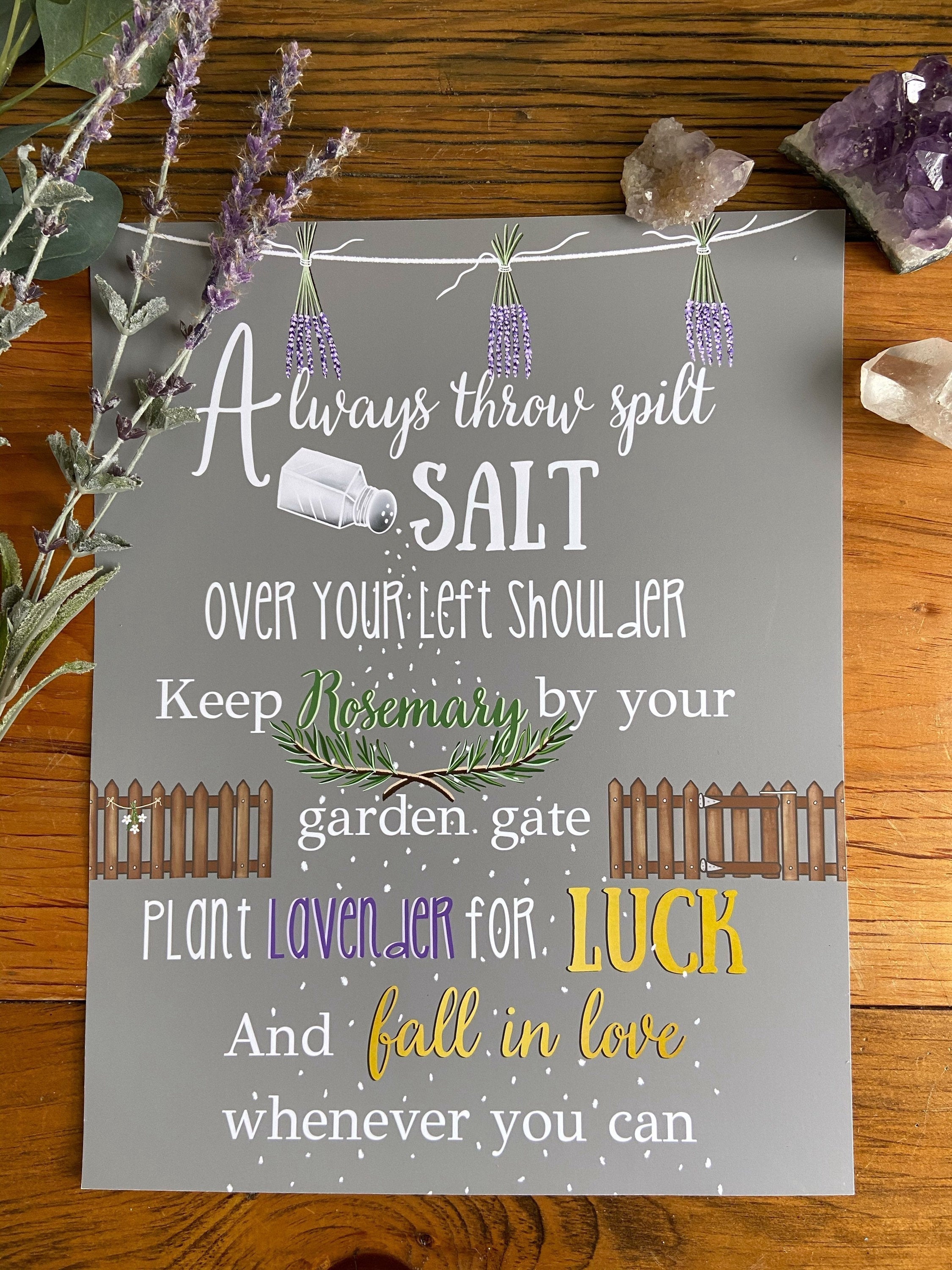 I took my time illustrating this. I savored illustrating each lavender bud and little grain of salt. I even burned some candles and sage to get into the right frame of mind- I love this print so much. The quote is from Sally Owens' character in Practical Magic.